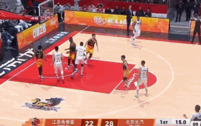 易边再战,北京还是以防守做起,杰曼与斯佩尔曼防守积极性都起来了,周琦在篮下一柱擎天连续干扰江苏多次出手,陈盈骏三分再中北京已经四人上双,北京单节净胜江苏十分,三节打完北京已经领先江苏14分。